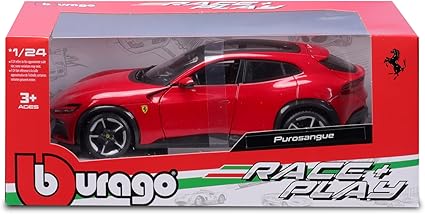 La Ferrari Purosangue 1/24 de Bburago est une réplique fidèle du premier SUV de Ferrari, alliant puissance et élégance. Ce modèle réduit en métal moulé sous pression arbore une finition rouge éclatante, des portes ouvrantes et un intérieur finement détaillé. Avec son design audacieux et ses détails soignés, cette miniature est parfaite pour les collectionneurs et les passionnés de voitures d’exception.
