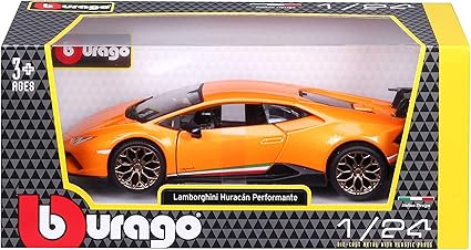 La Lamborghini Huracán Performante 1/24 de Bburago est une réplique fidèle de la supercar haute performance, célèbre pour son aérodynamisme avancé et sa puissance impressionnante. Ce modèle réduit en métal moulé sous pression présente une superbe finition orange métallisée, des portes ouvrantes et un intérieur détaillé. Son design sportif et ses finitions soignées en font une pièce incontournable pour les collectionneurs et les passionnés de voitures de luxe.