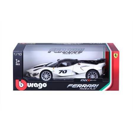 La Ferrari FXX K Evo 1/18 de Bburago est une réplique détaillée de la version extrême et exclusive de la FXX K, développée pour la piste. Ce modèle réduit en métal moulé sous pression présente une finition blanche élégante, des portes ouvrantes et un intérieur fidèlement reproduit. Son design agressif, son imposant aileron et ses détails soignés en font une pièce incontournable pour les collectionneurs et les passionnés de voitures de course Ferrari.